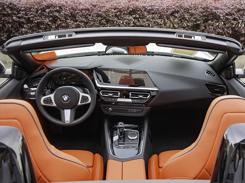 宝马Z4的内饰设计凸显了运动与豪华的完美结合。车内采用皮/Alcantara混搭材质的座椅,提供卓越的舒适度和支撑性,座椅还具备加热功能,确保在各种天气条件下都能保持舒适。主副座椅均支持多种调节方式,包括前后调节、靠背调节、高低调节、腿托调节和腰部支撑,确保每位乘客都能找到最佳坐姿。此外,方向盘采用真皮材质,具备手动上下+前后调节功能,以适应不同驾驶者的习惯。中控屏幕尺寸为10.25英寸,集成了多媒体系统、导航、电话和空调的语音识别控制系统,为驾驶者带来便捷的操作体验。车内还配备了USB和Type-C接口,方便连接各种设备,并支持前排手机无线充电功能,进一步提升了便利性。