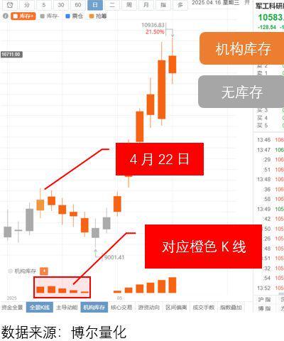 如果「机构库存」数据越活跃,那就意味着参与交易的机构资金越多,机构资金参与的时间也越长。