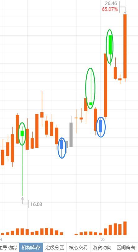 表面上看,机构和散户都是 “新闻追涨杀跌派”,跟着消息跑。但要是用 “透视眼”(也就是观察「机构交易特征」)仔细一瞧,就会发现专业机构简直是 “人精中的人精”!用量化系统打开「全景 K 线 日之前,K 线灰扑扑的,就像没人搭理的 “小透明”;但从这天开始,橙色 K 线突然 “闪亮登场”,这就相当于机构给股票贴上了 “重点关注” 的标签。哪怕后面几天股价狂跌,橙色 K 线依旧坚挺,说明机构早就嗅到了机会,在偷偷 “囤货”。五一放假前 K 线变灰,这很好理解,大家都忙着准备假期,无心恋战;节后橙色 K 线又 “满血复活”,等到时机一到,直接开启 “暴走模式”!